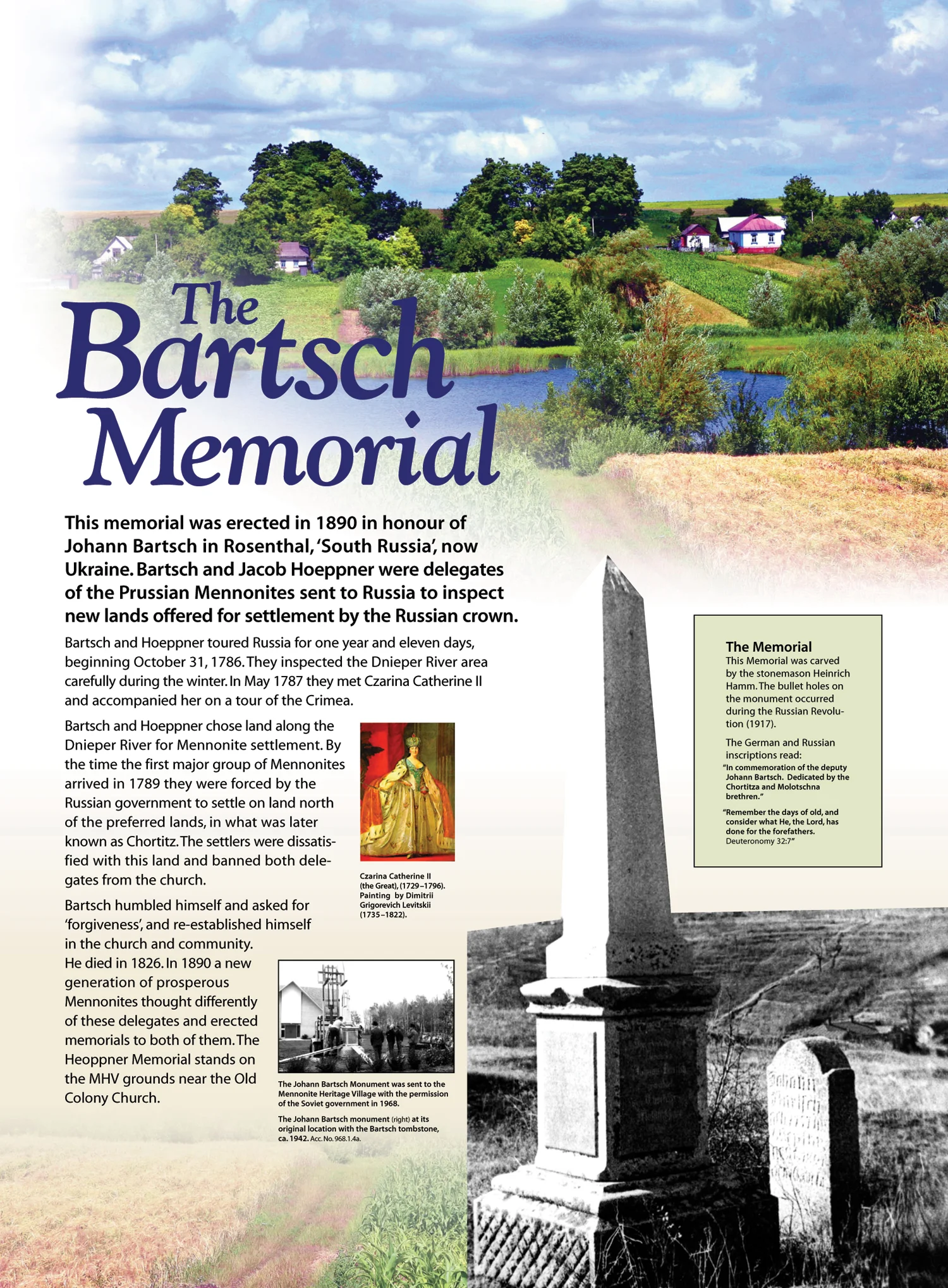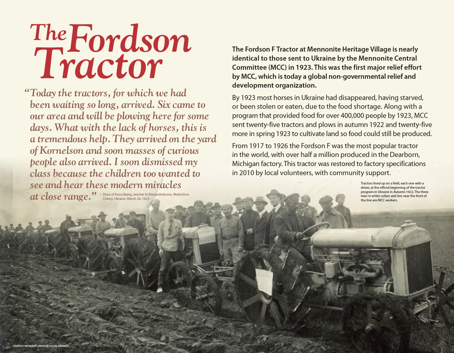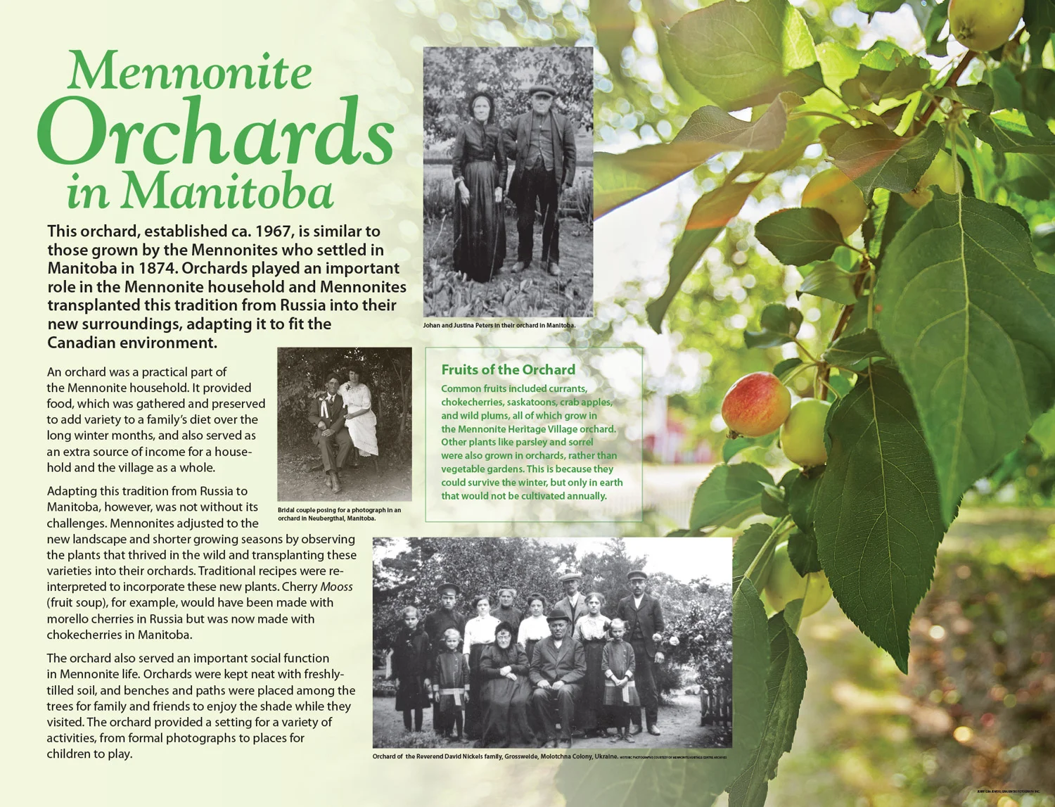 Outdoor interpretive historic signage was required throughout the grounds of Mennonite Heritage Village. The signs describe artefacts at the outdoor museum such as the landmark windmill and more than fifteen historic buildings and memorials. Full-colour curatorial notebooks were also designed to provide visitors with detailed information. Graphic design, print and production services were provided as well as obtaining and managing sign fabrication and on-time delivery. 2003–present