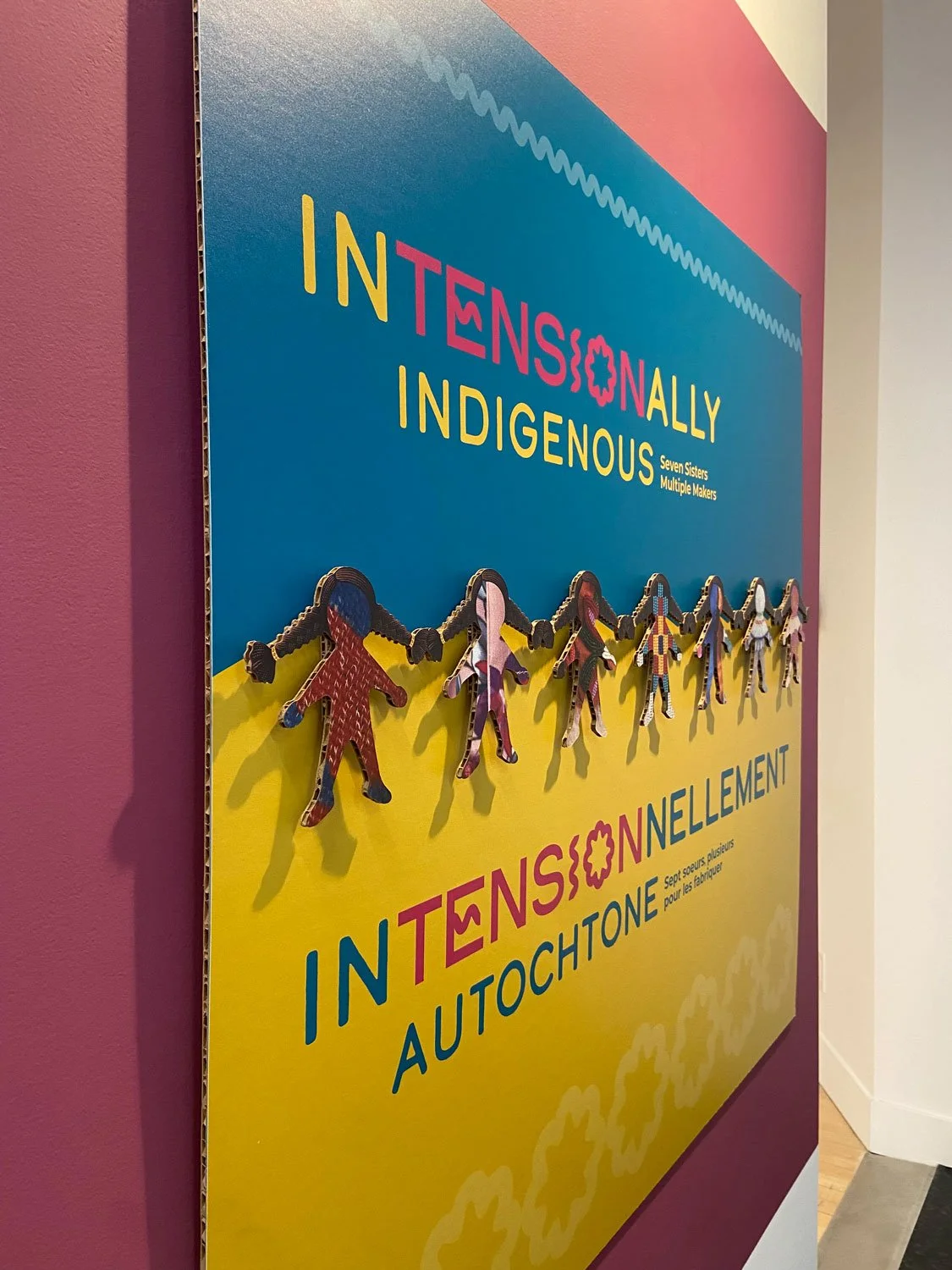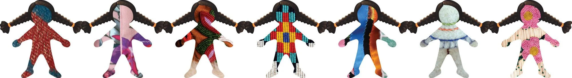 Paper dolls incorporating patterns used by the seven makers were created with hair that holds them together, referencing the cultural importance of hair in Indigenous traditions.